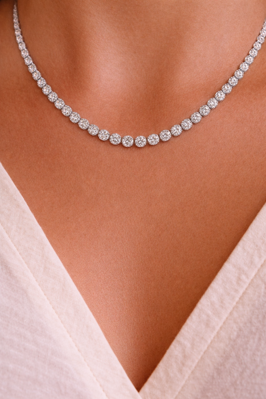 Tru-Diamonds™ Spectacular 18 Inch Round Bezel Set Synthetic Lab Grown Diamond Tennis Necklace