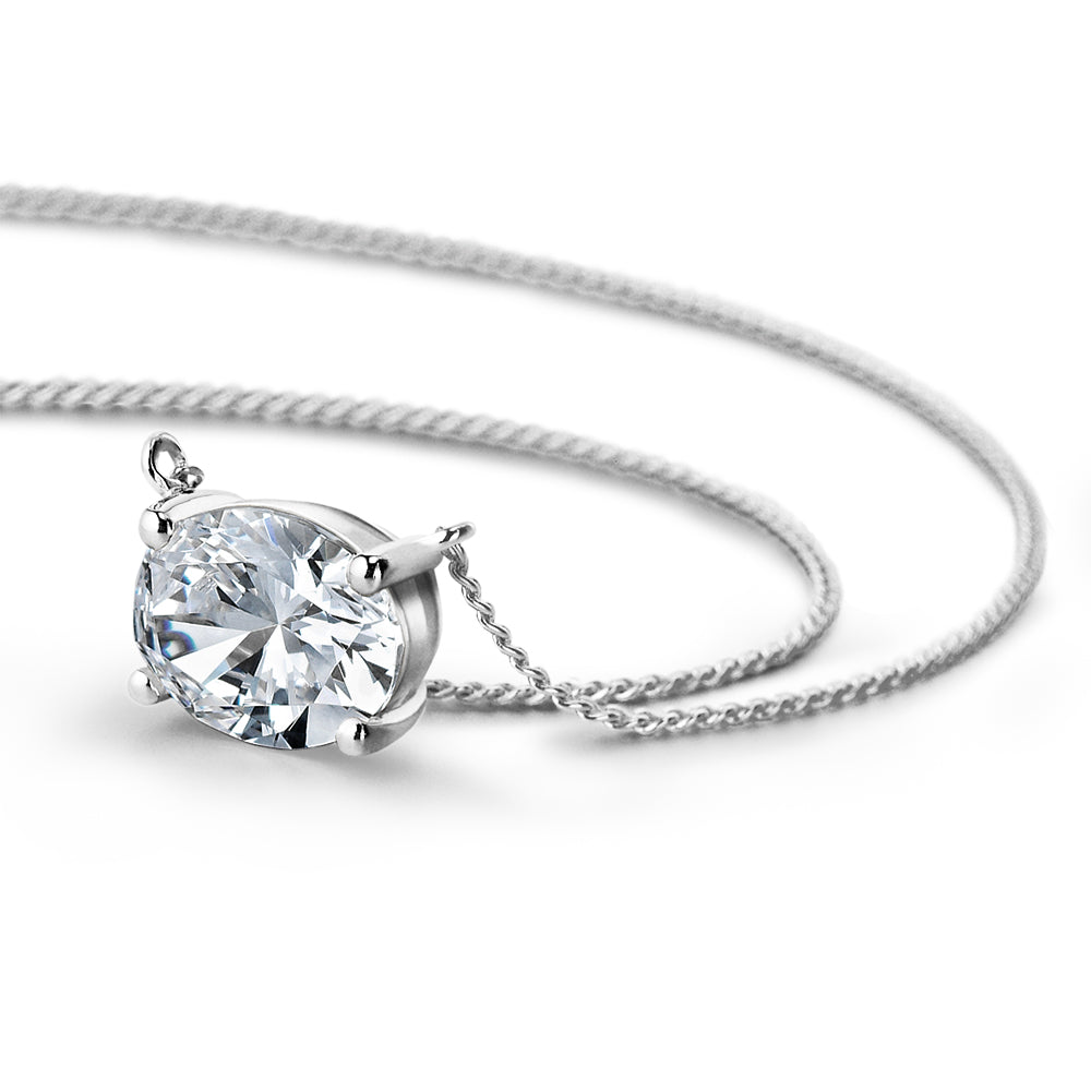 A sleek, contemporary twist on a jewellery staple, the 2 ct. East-West Oval Cut Necklace exudes effortless glamour. Showcasing a brilliant 2-carat oval cut Tru-Diamonds™ gem in a striking horizontal setting, this necklace is designed to catch the light from every angle. Suspended from a delicate yet durable chain, it’s a versatile piece that transitions seamlessly from day to night. Elegant, refined, and undeniably eye-catching—this is everyday luxury at its finest.