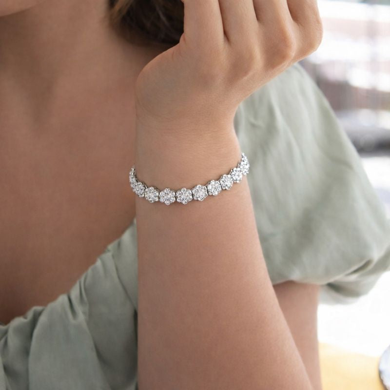 The Eternal Bouquet Bracelet has an exceptional design featuring a total of 14.7 earth-friendly Tru-Diamonds™ set in 21 bouquets of six sparkling gems per cluster.