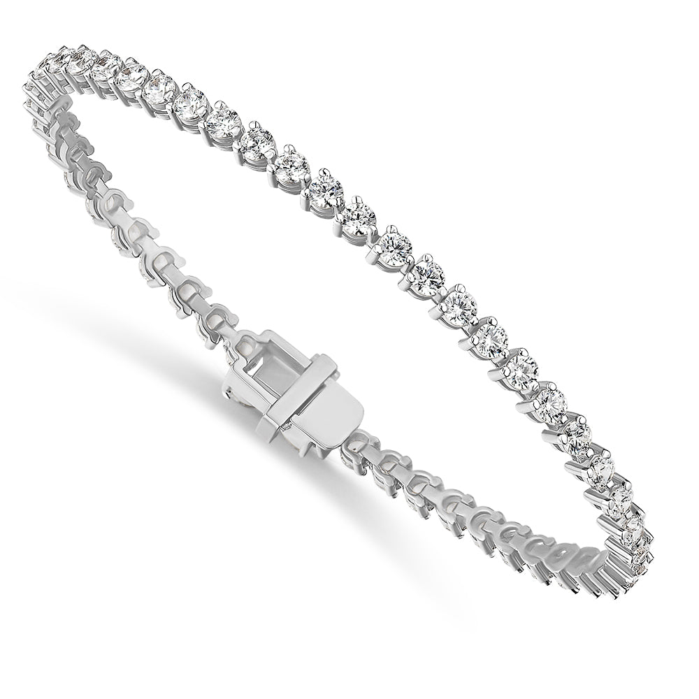 Add a touch of elegance to any outfit any time with this Tiffany style Tennis Bracelet boasting 46 dazzling Tru-Diamonds™ lab grown diamond simulants laid individually in an elegant setting.