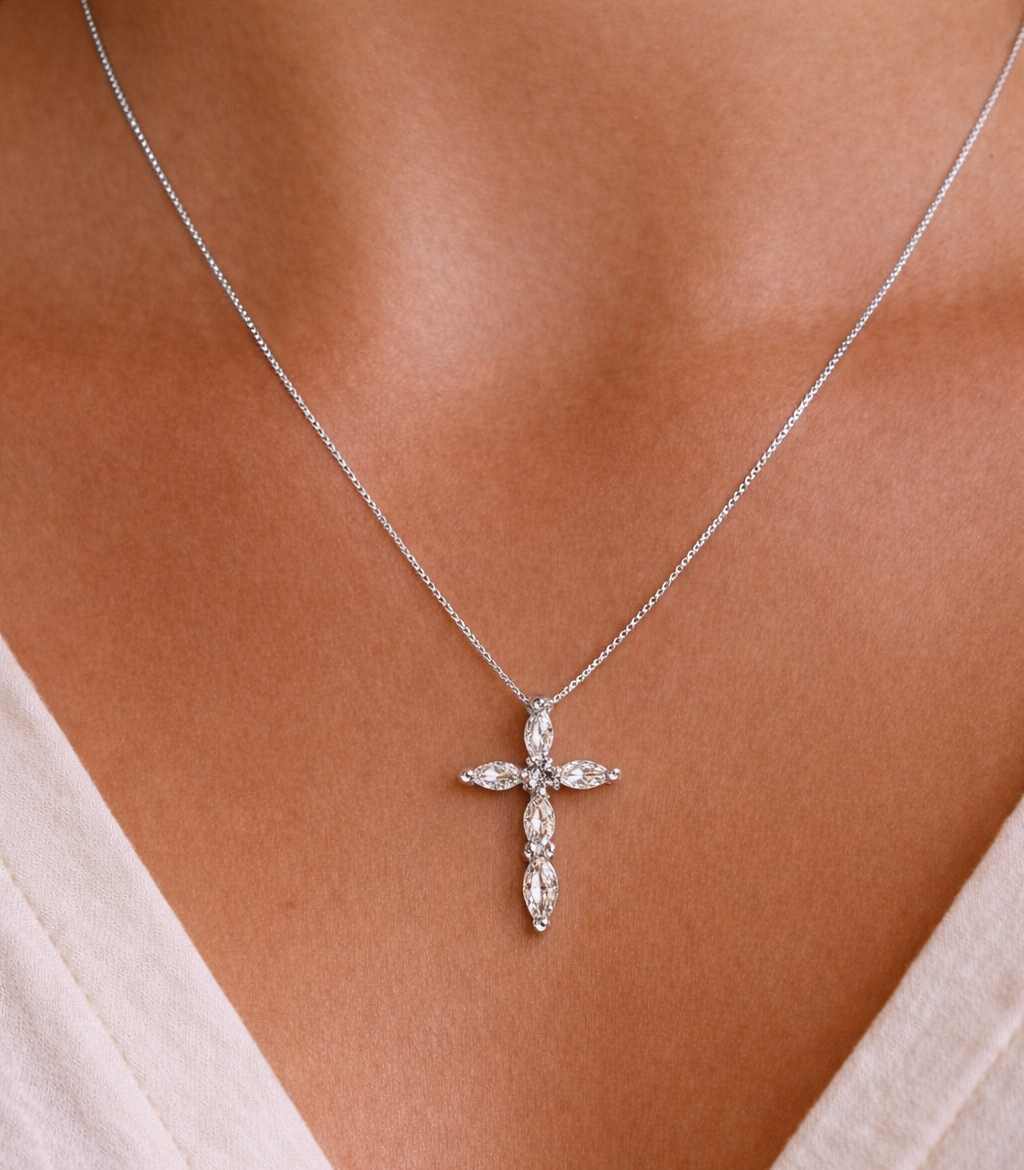 Tru-Diamonds™ Marquise Cut Synthetic Lab Grown Diamond Crucifix Cross Pendant Necklace
