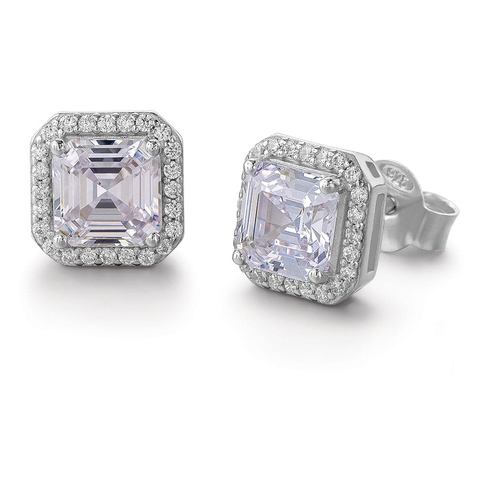 Our Asscher Cut Halo Studs showcase a 1.25 ct. asscher cut Tru-Diamonds™ gem framed by a halo of pavé set gems – giving you a look of sheer elegance.
