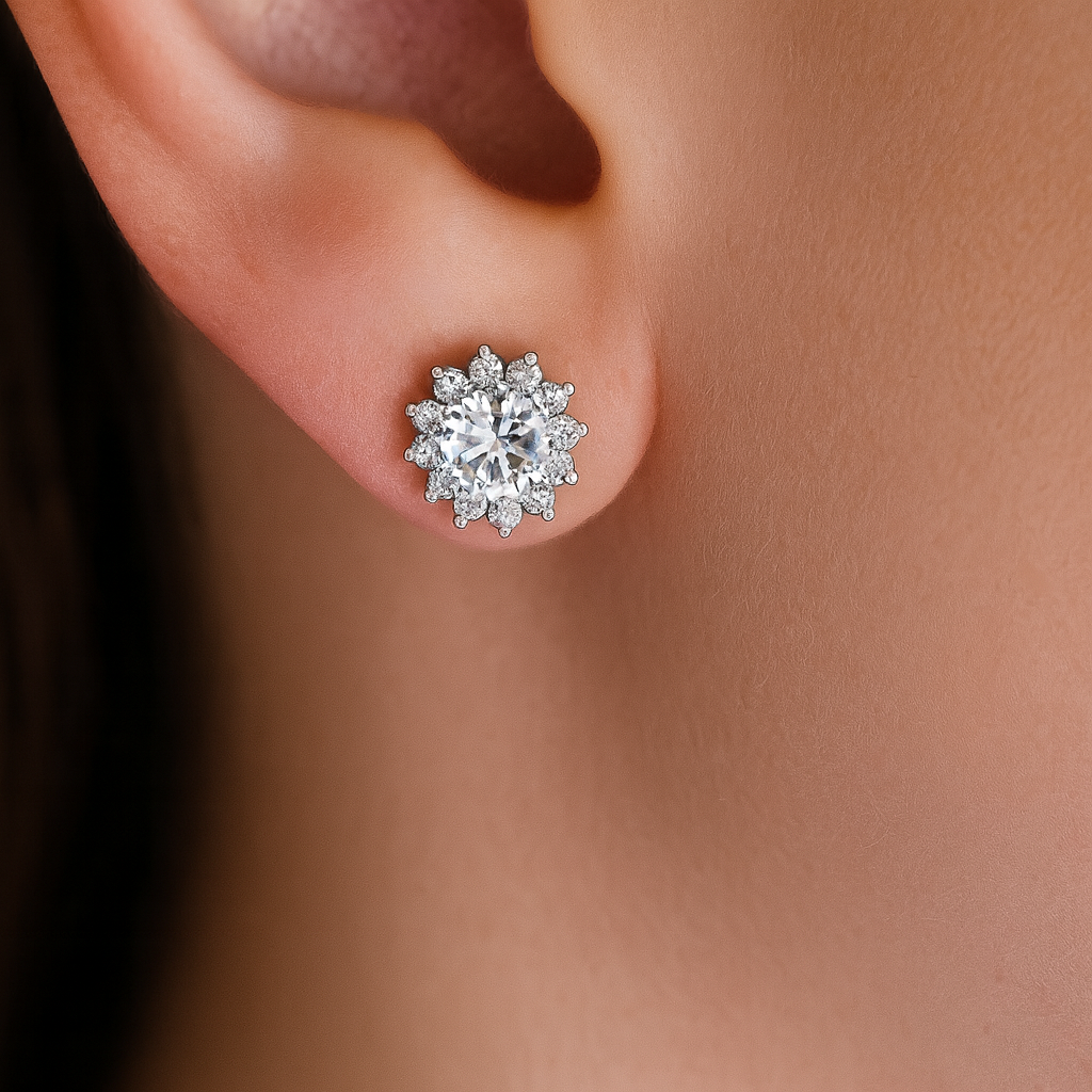 Our Dainty Flower Earrings, set with 1.0 carats of sparkling Tru-Diamonds™, are a sensational accessory to finish off your look with an exquisite measure of class.