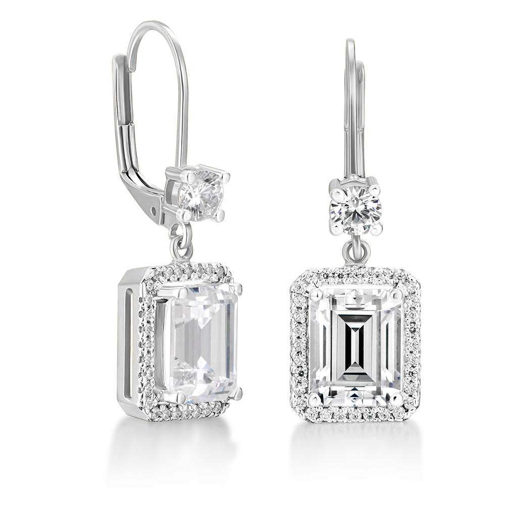 Tru-Diamonds™ Emerald Cut Synthetic Lab Grown Diamond Drop Earrings