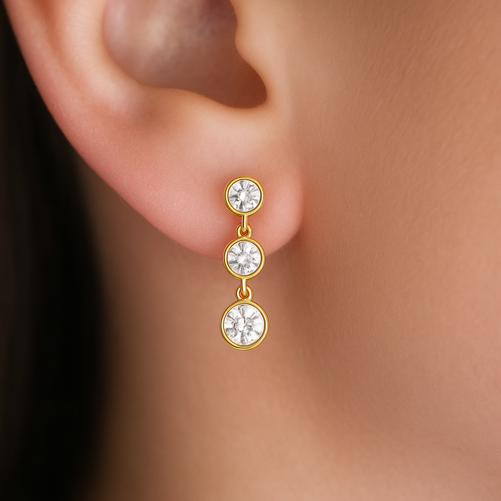 Tru-Diamonds™ Trilogy Three Stone Synthetic Lab Grown Diamond Drop Earrings