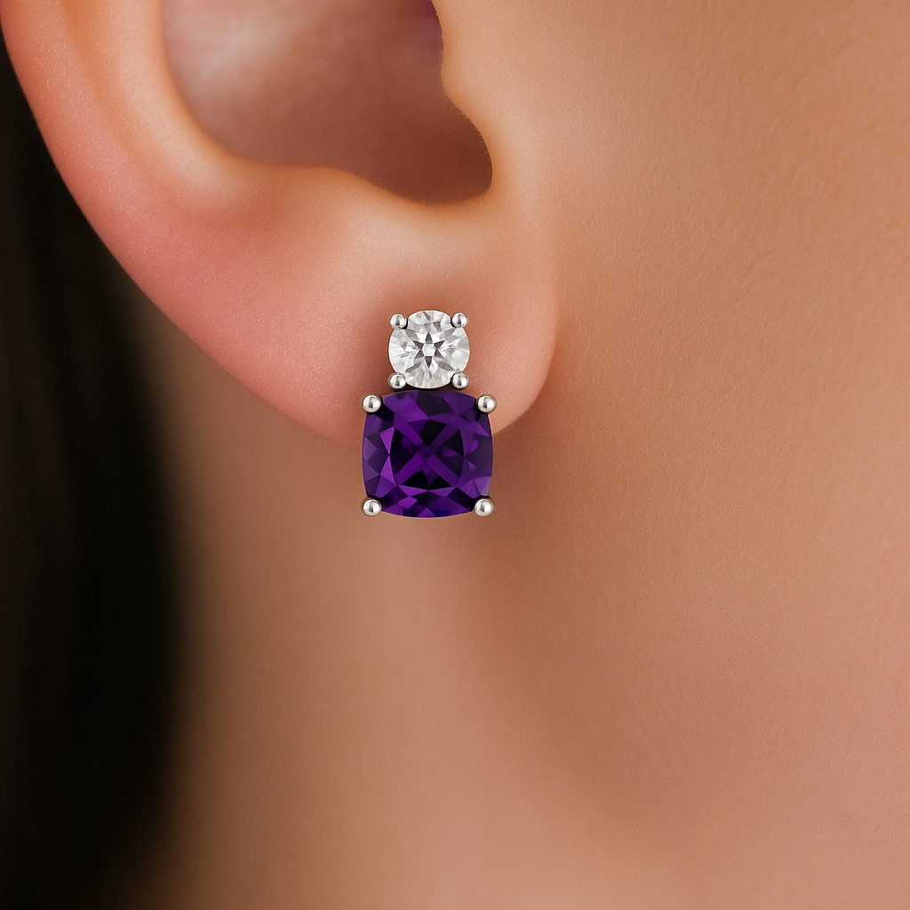 Tru Amethyst 3.35 Carat Cushion Cut Synthetic Lab Grown Diamond Stud Earrings