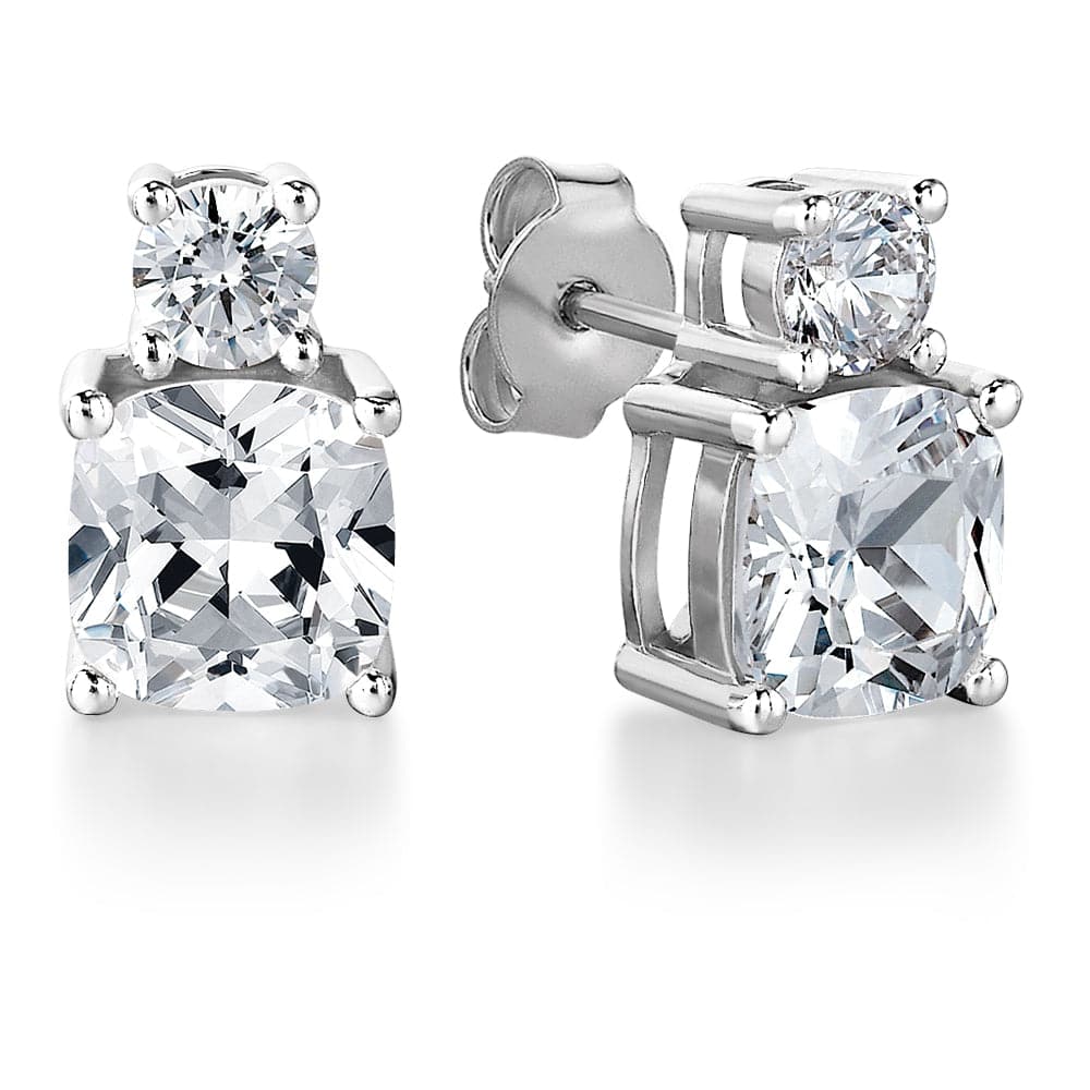 Tru-Diamonds™ Cushion and Round Cut Synthetic Lab Grown Diamond Stud Earrings