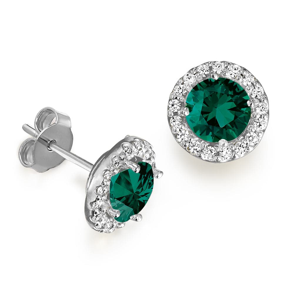These timeless earrings feature a stunning halo of sparkling Tru-Diamonds™ gems surrounding a 1 ct. Tru Emerald centre gem, making it a truly elegant piece of jewellery for any occasion.