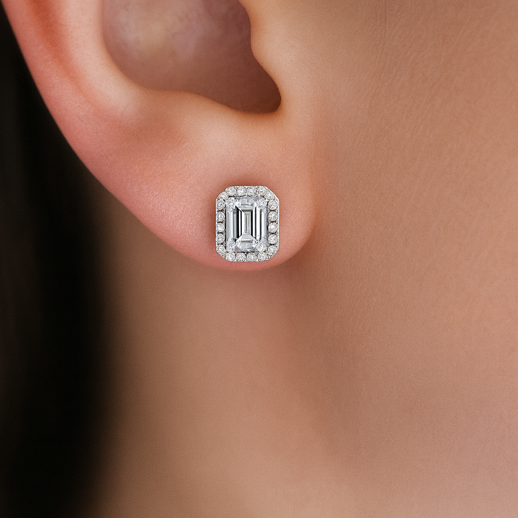 Featuring a 1.0 carat emerald cut Tru-Diamonds™ centre gem and surrounding halo, the Star of Monaco Stud Earrings are perfect accessories to show off at any event. Your friends and family will assume they’re from an haute couture designer.