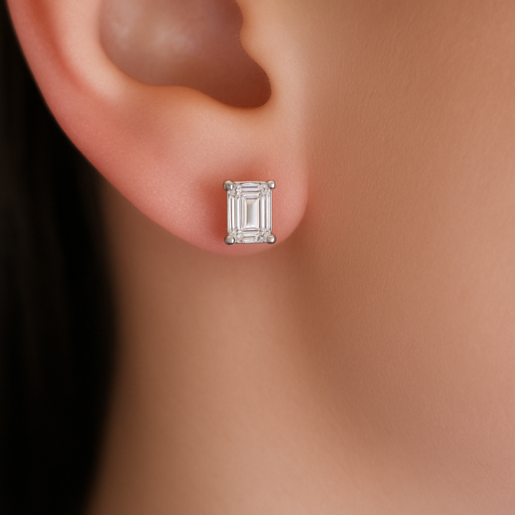 1 Carat Emerald Cut Earrings