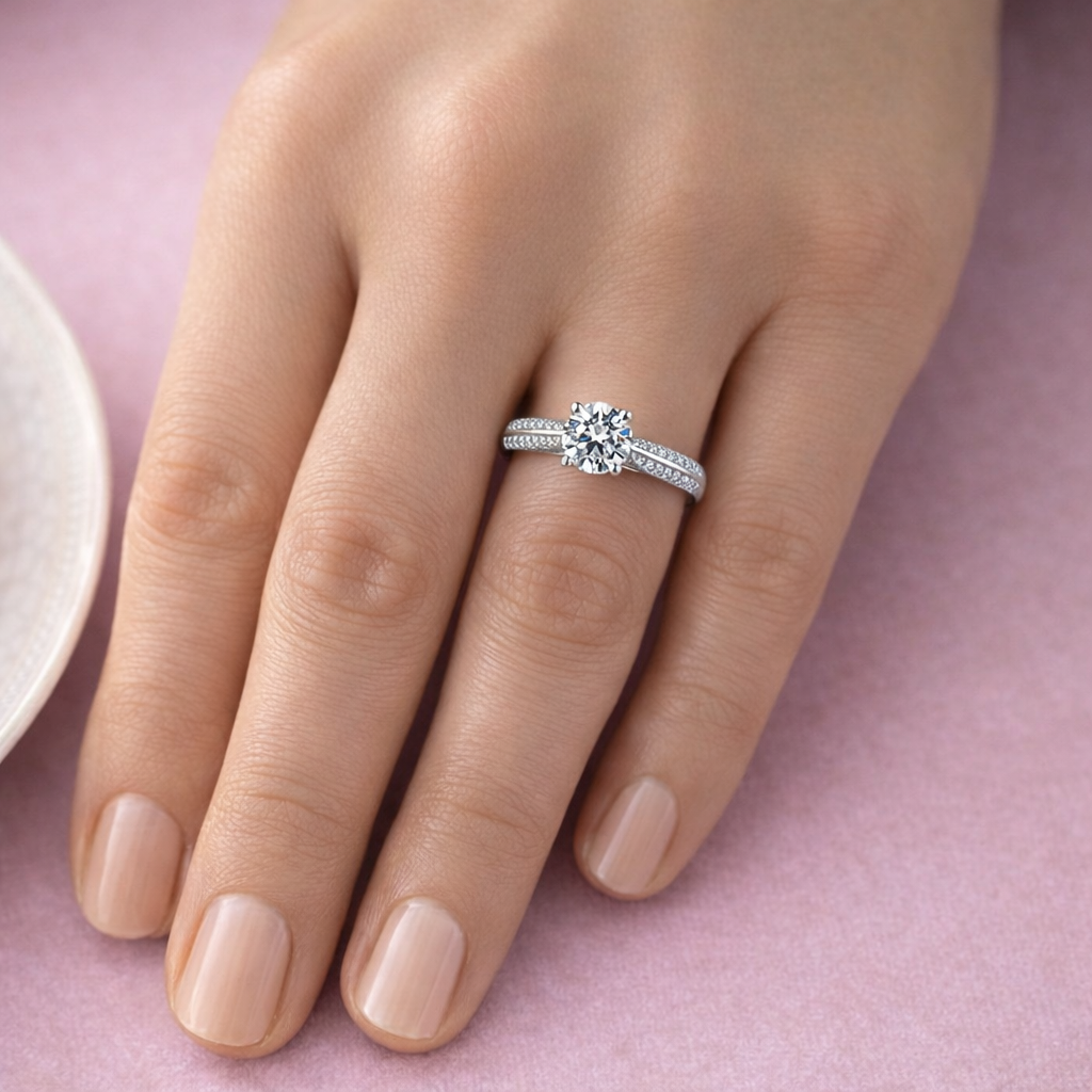 Tru-Diamonds™ 1 Carat Round Brilliant Cut Synthetic Lab Grown Diamond Accolade Cathedral Set Engagement Ring
