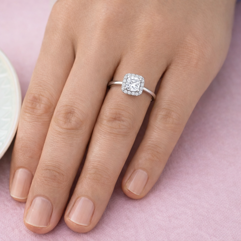 Talk about a stunner! The sensational sparkle of the Cushion Cut Halo Ring, with its impressive 1.65 ct. t.w. Tru-Diamonds™ will be sure to make you the centre of attention at any event.