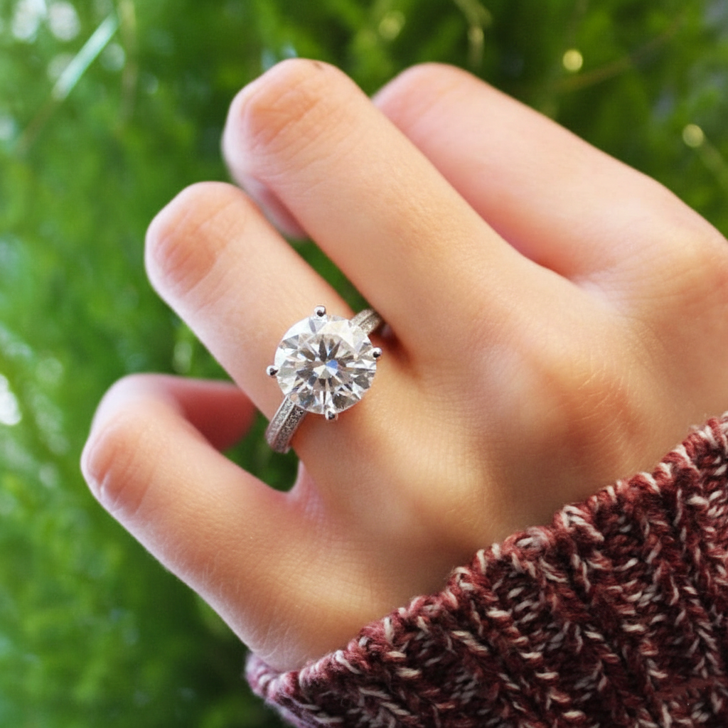 Tru-Diamonds™ Round Brilliant Cut Lab Grown Diamond Cathedral Setting Engagement Ring