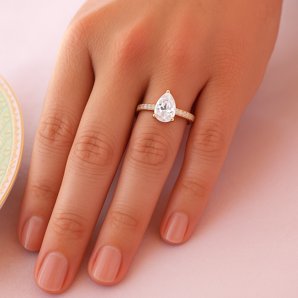 Shining Pear Cut Solitaire Ring