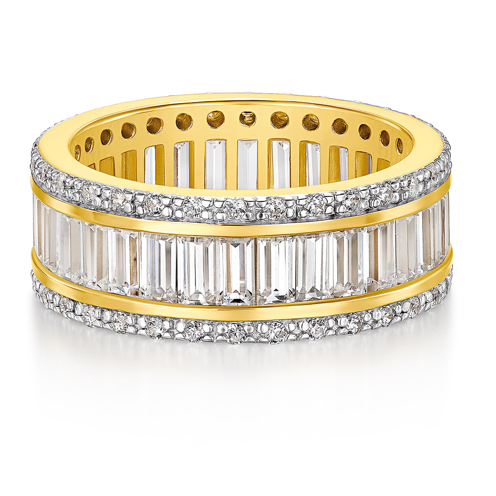 A dazzling celebration of endless elegance. The Raffles Eternity Ring features a continuous band of sleek baguette-cut gems, perfectly channel-set to create a seamless line of brilliance. A striking statement of eternity - crafted for those who love bold, timeless glamour.