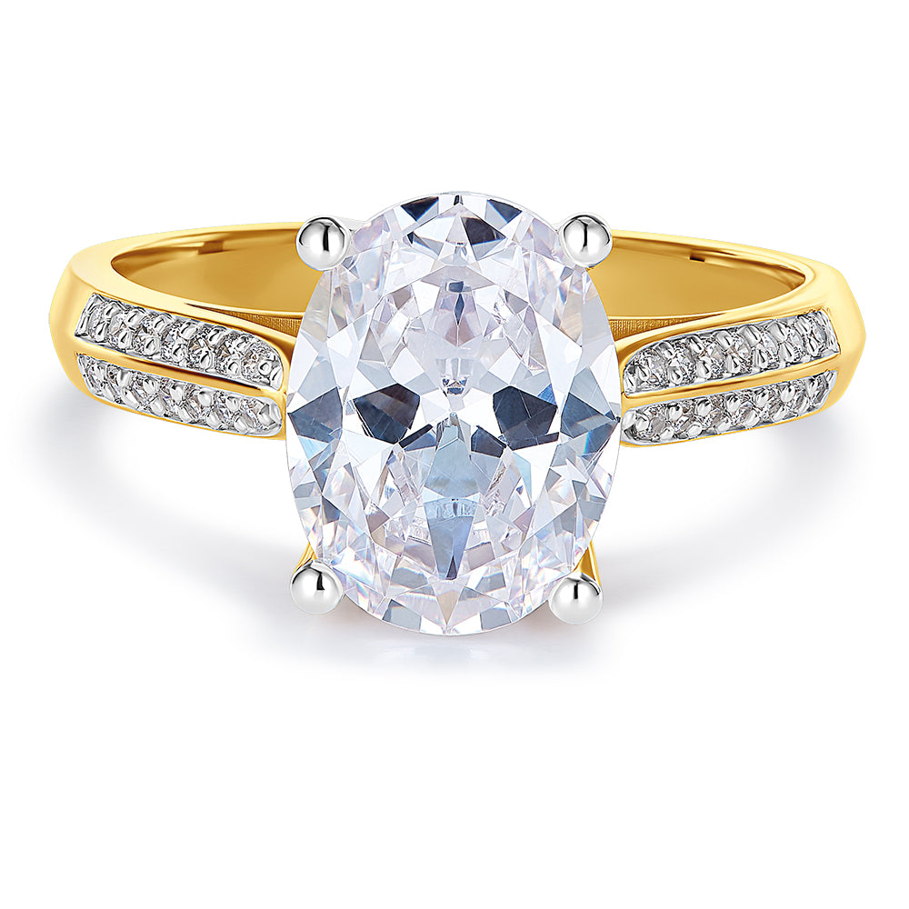 Graceful and radiant, the Grand Accolade Oval Ring showcases 3.75 ct. t.w. of ice white Tru-Diamonds™, crowned by a beautifully faceted oval centre gem. With its sleek silhouette and sophisticated sparkle, this refined design is perfect for elegant evenings, meaningful milestones, or elevating your everyday look.