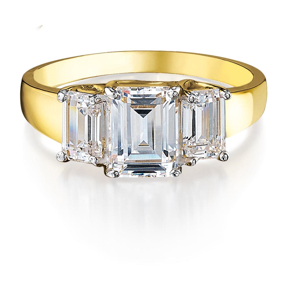 Tru-Diamonds™ Emerald Cut Synthetic Lab Grown Diamond Trilogy Ring