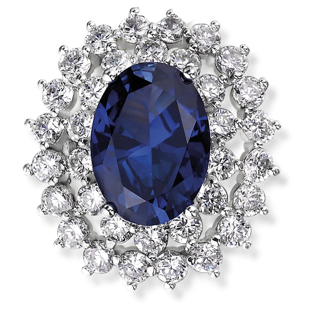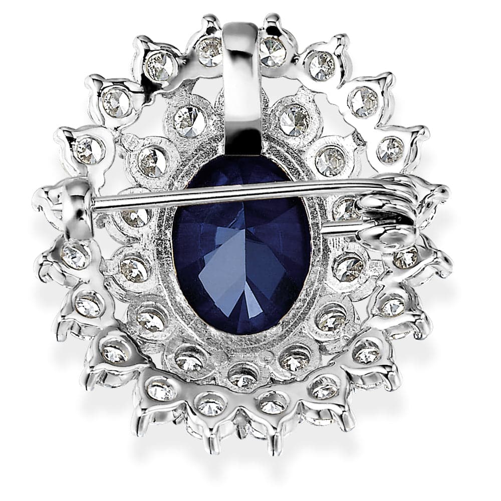 Princess Diana Tru Sapphire and Tru Diamond Oval Lab Grown Gems Royal Replica Brooch