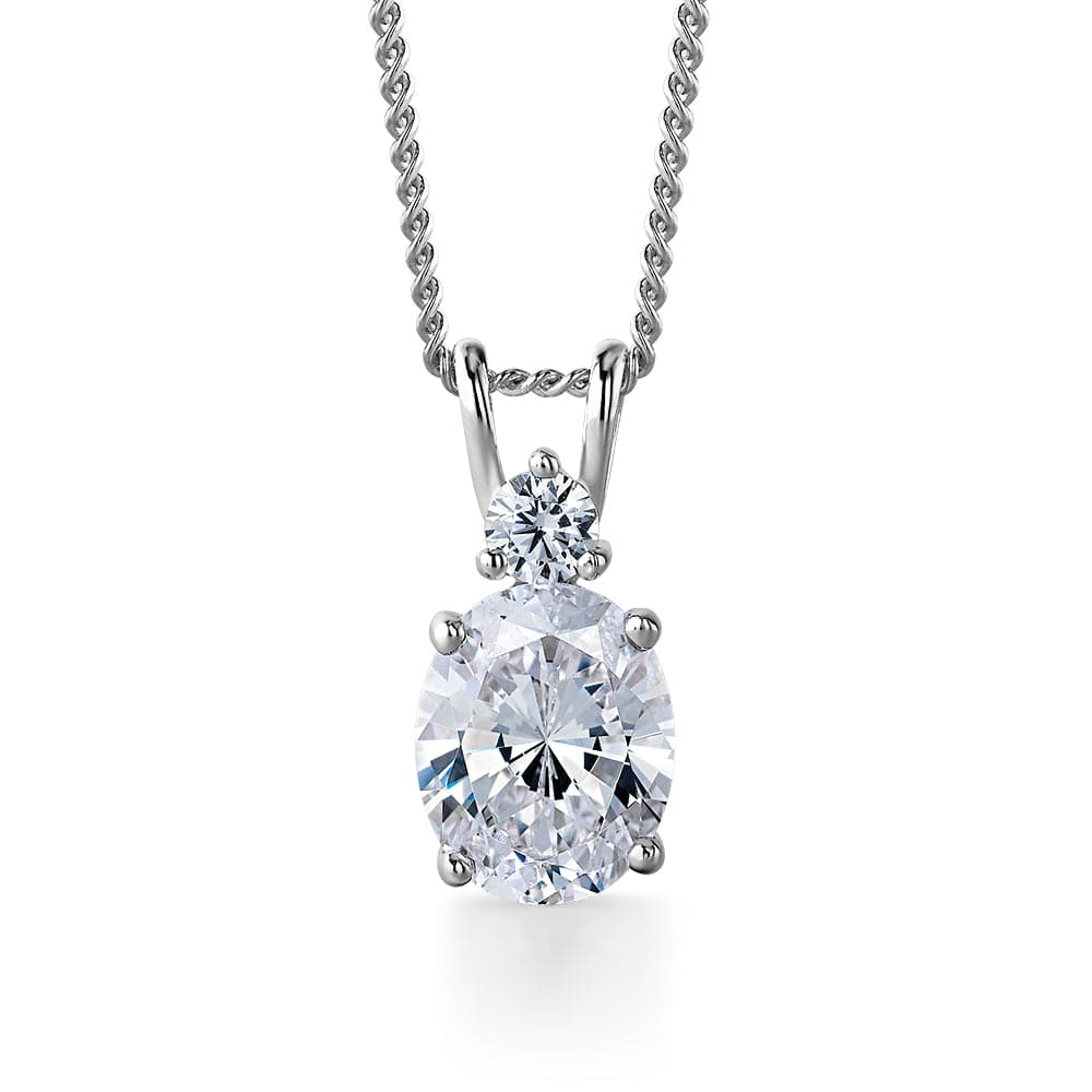 Tru-Diamonds™ 2.80 Carat Oval Cut Synthetic Lab Grown Diamond Solitaire Pendant with 18 Inch Chain