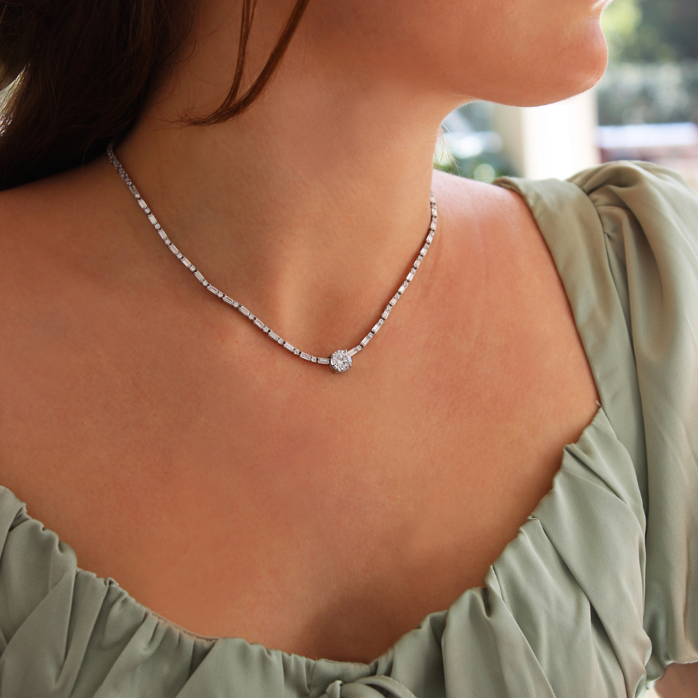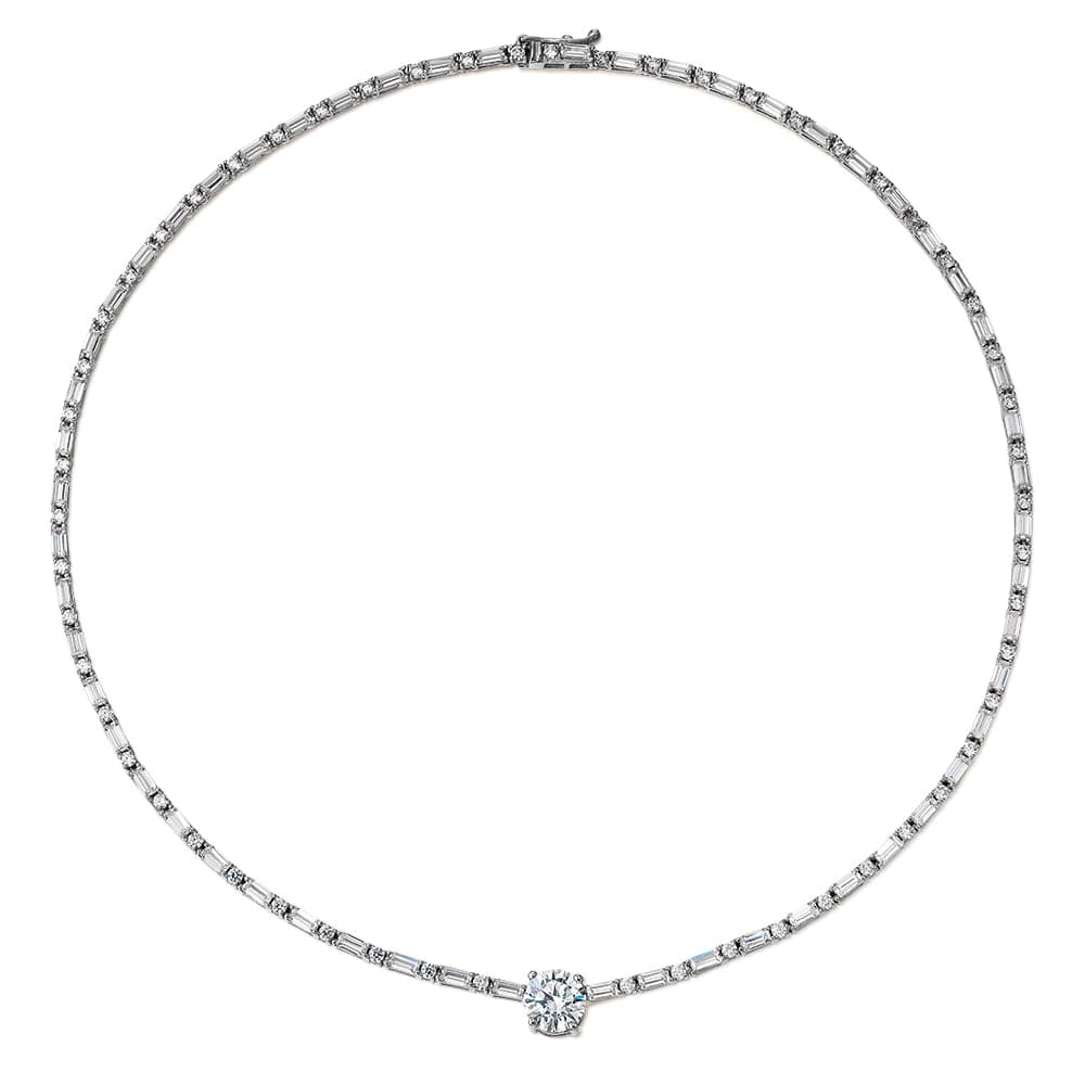 Tru-Diamonds™ Round Brilliant and Baguette Cut Synthetic Lab Grown Diamond Necklace