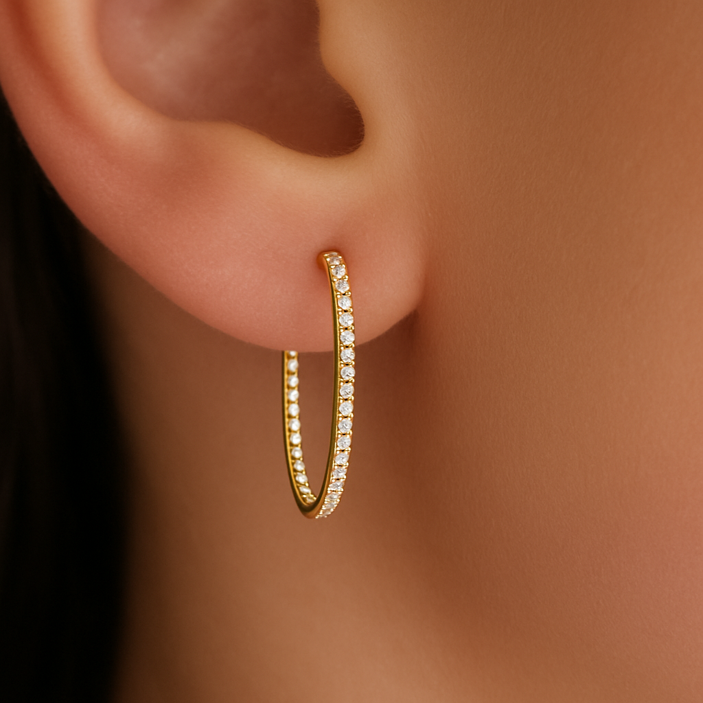 Feel like a celebrity on the red carpet when you wear these Celebrity Hoop Earrings. Set with 68 round brilliant cut Tru-Diamonds™, you will leave a sparkle wherever you go.