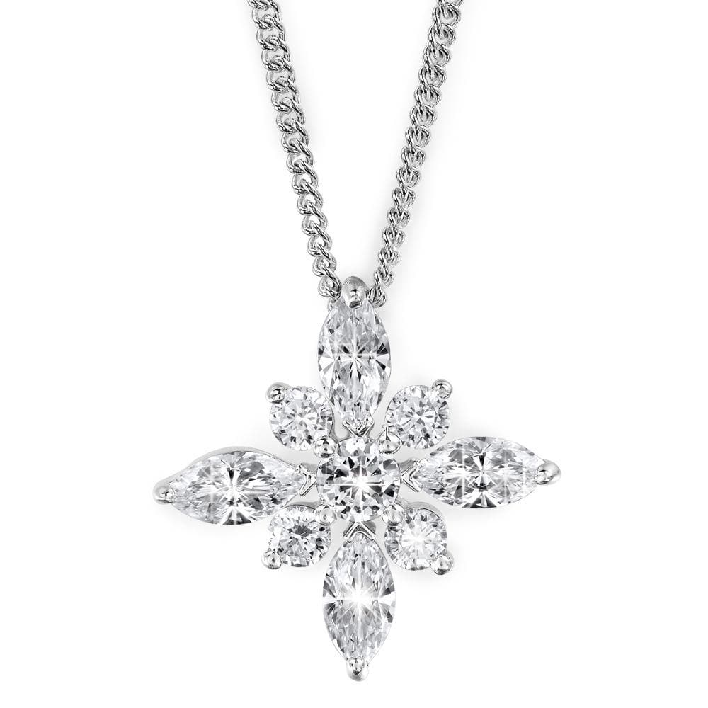 Tru-Diamonds™ 1.85 Carat Marquise Cut Synthetic Lab Grown Diamond Floral Design Pendant