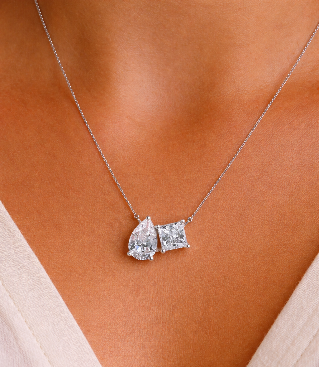 Toi et Moi Pear and Princess Cut Necklace