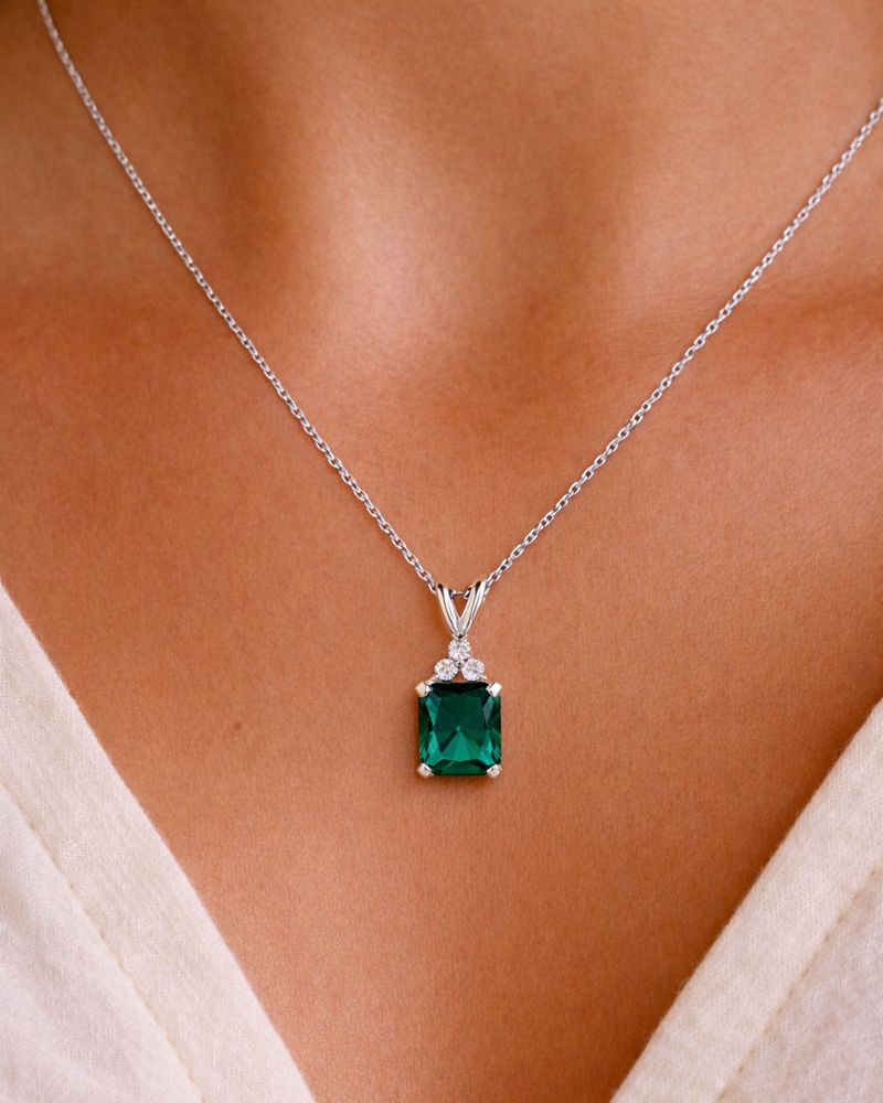 Tru Emerald Radiant Cut Synthetic Lab Grown Diamond Pendant