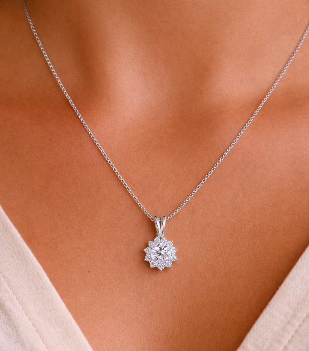 Tru-Diamonds™ Round Brilliant Synthetic Lab Grown Diamond Cluster Pendant and 18 Inch Chain