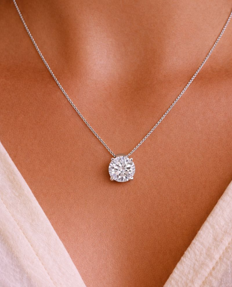 Tru-Diamonds™ 3 Carat Round Brilliant Cut Synthetic Lab Grown Diamond Solitaire Pendant with Chain