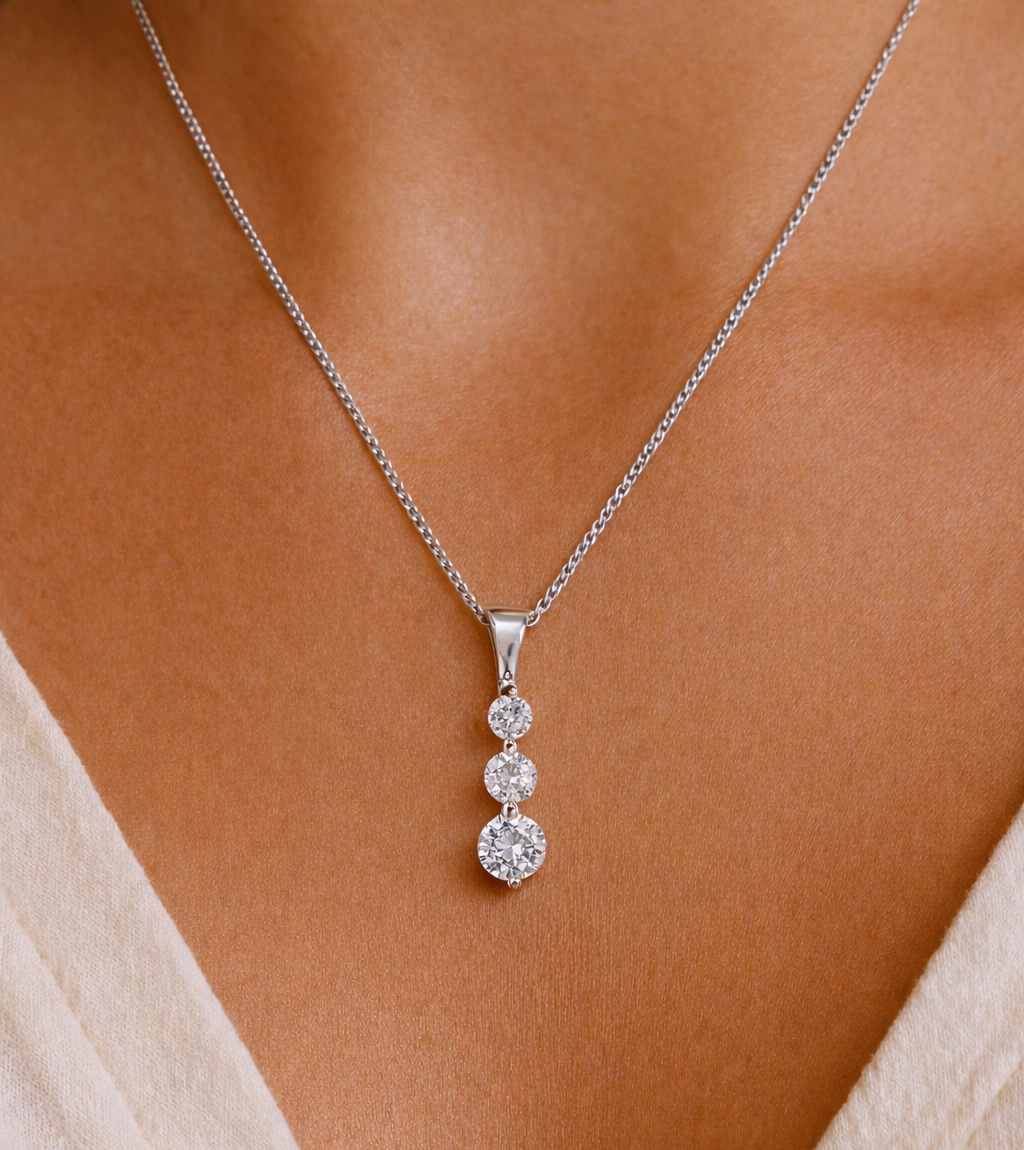 Tru-Diamonds™ Trilogy Synthetic Lab Grown Diamond 3 stone Pendant with 18 Inch Chain
