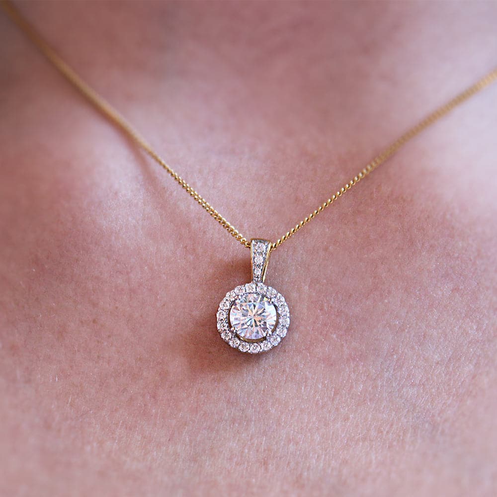 Tru-Diamonds™ 1.20 Carat Round Brilliant Cut Synthetic Lab Grown Diamond Halo Pendant with 18 Inch Chain
