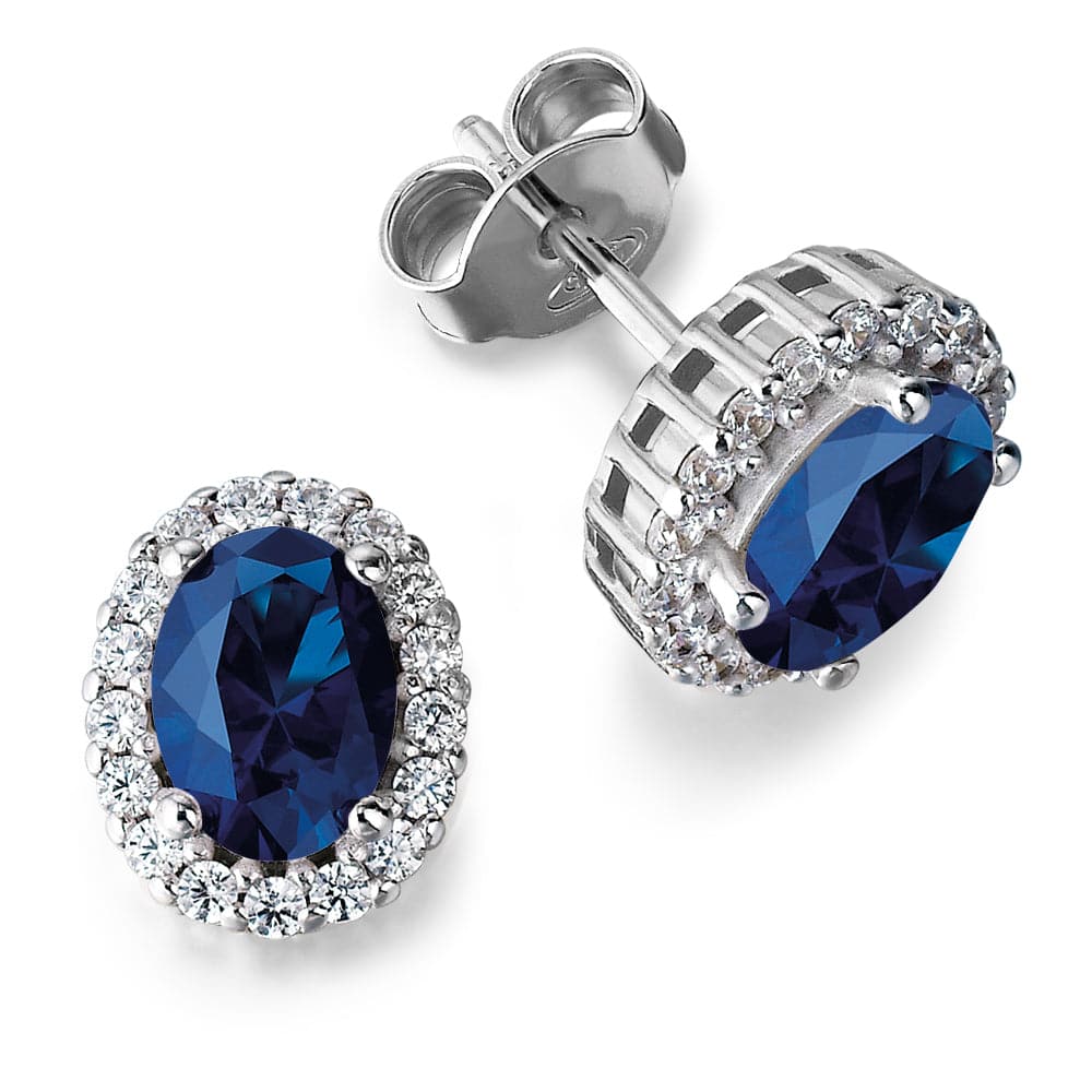 Tru Sapphire Oval Cut Earrings with a Halo of Synthetic Lab Grown Diamonds