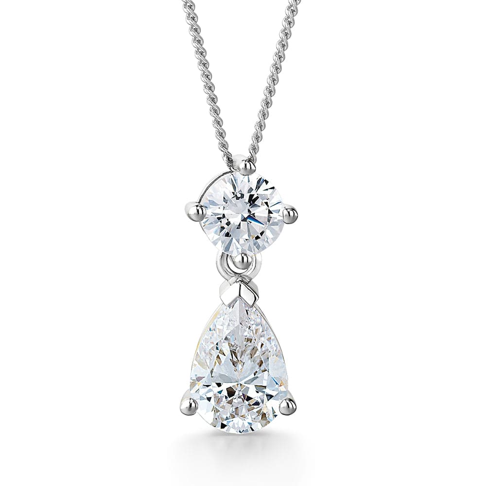 Tru-Diamonds™ Pear & Round Cut Synthetic Lab Grown Diamond Tear Drop Pendant with 18 Inch Chain