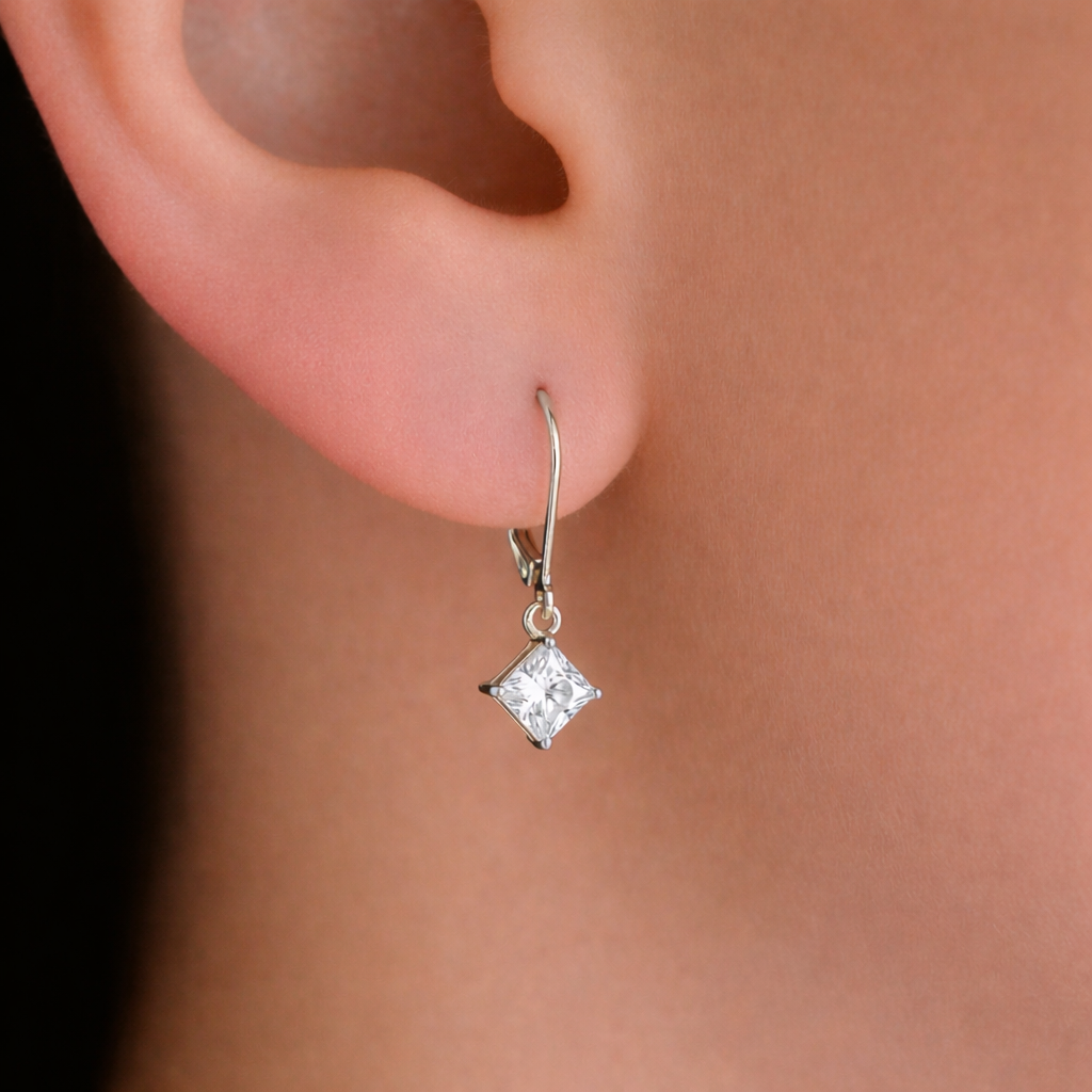 With a square-shaped Tru-Diamonds™ gem in each earring, the Princess Cut Drop Earrings showcase the ultimate sparkle with the inner brilliance of the Tru-Diamonds™.