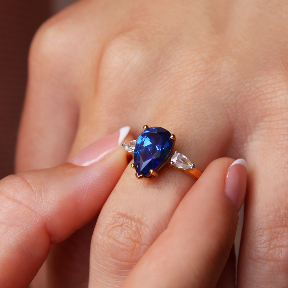 Tru-Diamonds™ Pear Cut Blue Synthetic Lab Grown Diamond Ring