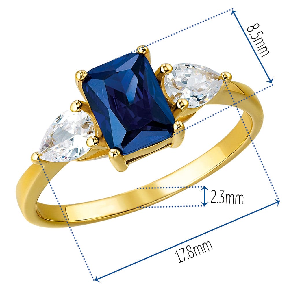 Tru-Diamonds™ Radiant and Pear Cut Synthetic Lab Grown Sapphire Trilogy Ring