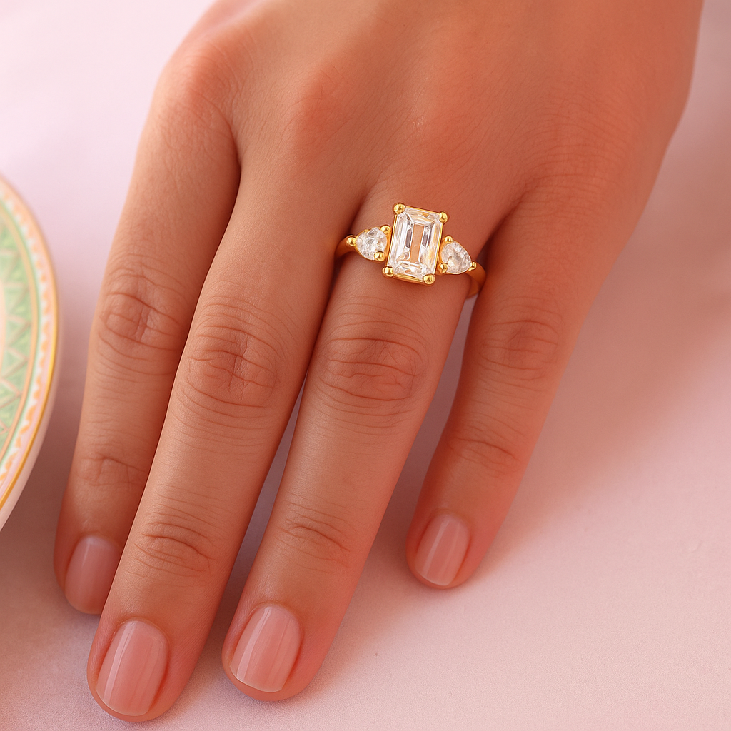 Tru-Diamonds™ Radiant Cut Synthetic Lab Grown Diamond Three Stone Ring