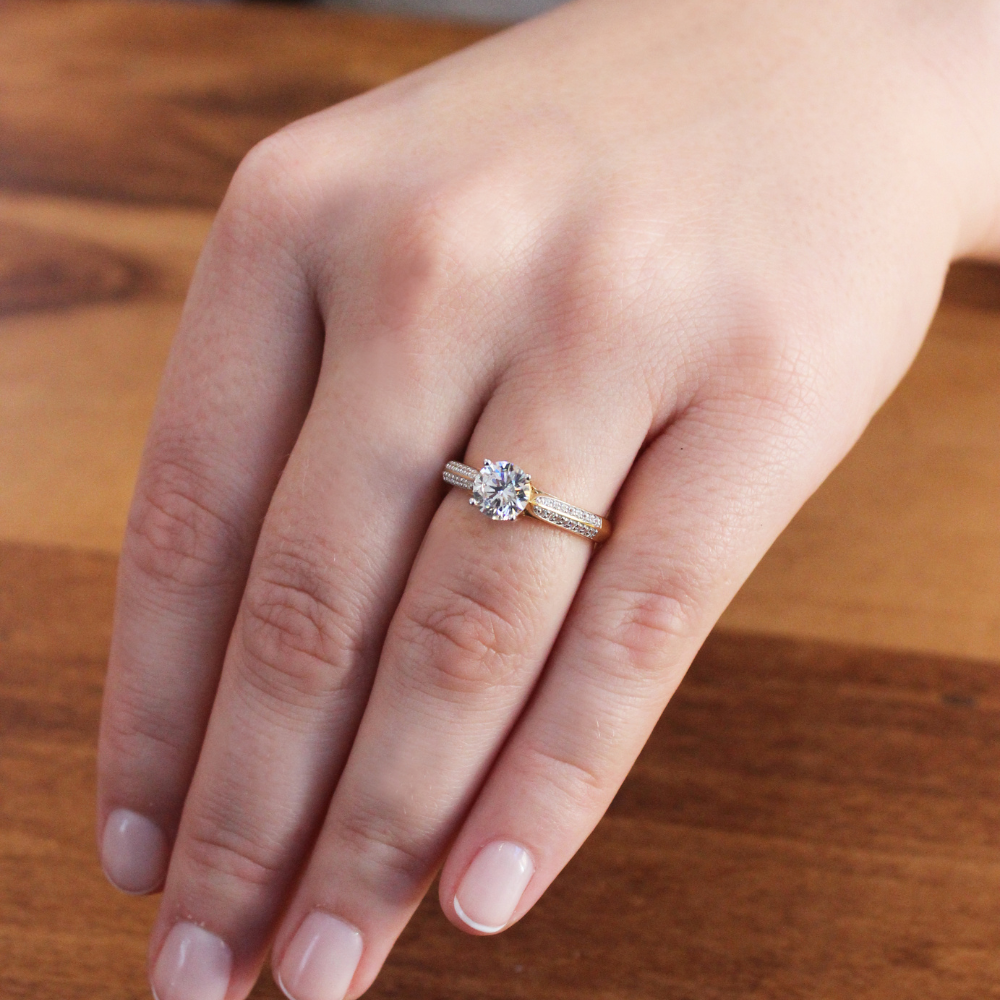 Tru-Diamonds™ 1 Carat Round Brilliant Cut Synthetic Lab Grown Diamond Accolade Cathedral Set Engagement Ring