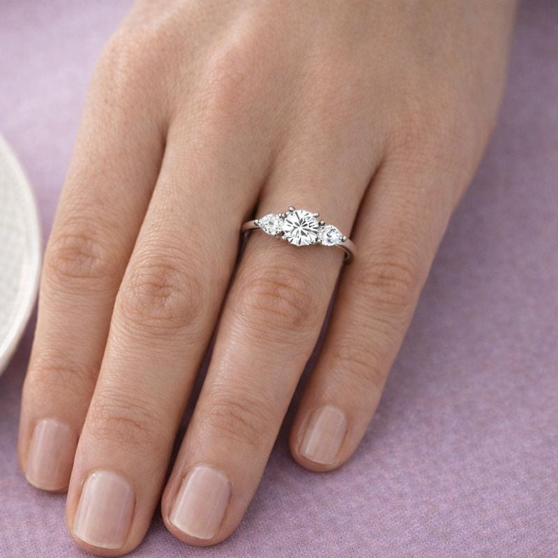 Tru-Diamonds™ Round and Pear Cut Synthetic Lab Grown Diamond Trilogy Ring