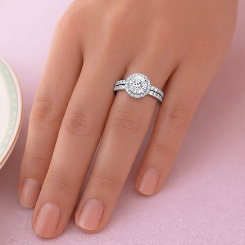 Tru-Diamonds™ Round Brilliant Cut Synthetic Lab Grown Diamond Halo and Eternity Ring Set