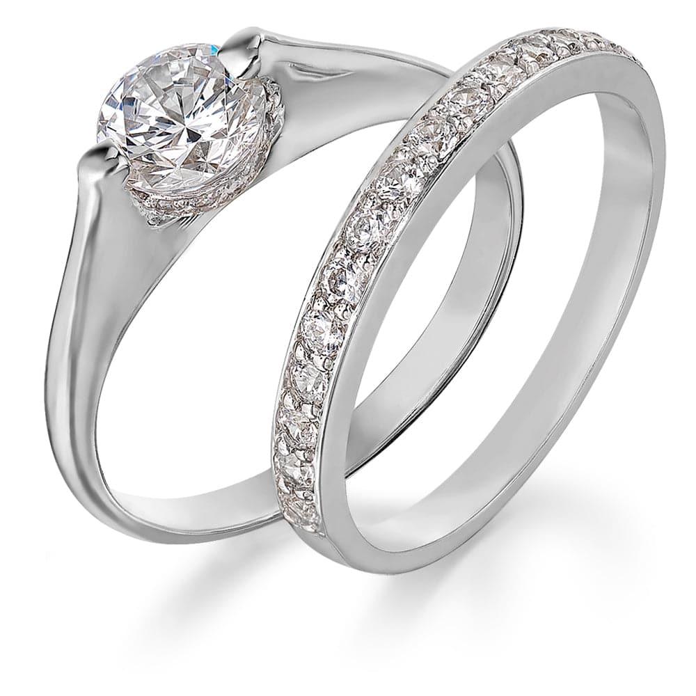 Tru-Diamonds™ Round Brilliant Cut Synthetic Lab Grown Diamond Tension Solitaire and Eternity Ring Set