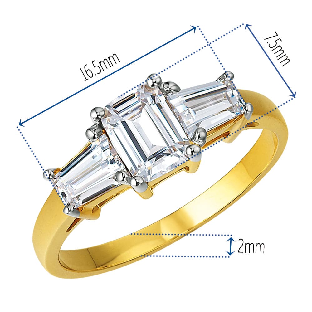 A timeless symbol of love and sophistication. This exquisite ring showcases a striking emerald cut centre gem, flanked by two tapered baguettes that radiate elegance from every angle. A perfect choice for engagements, anniversaries, or simply celebrating life’s most special moments.