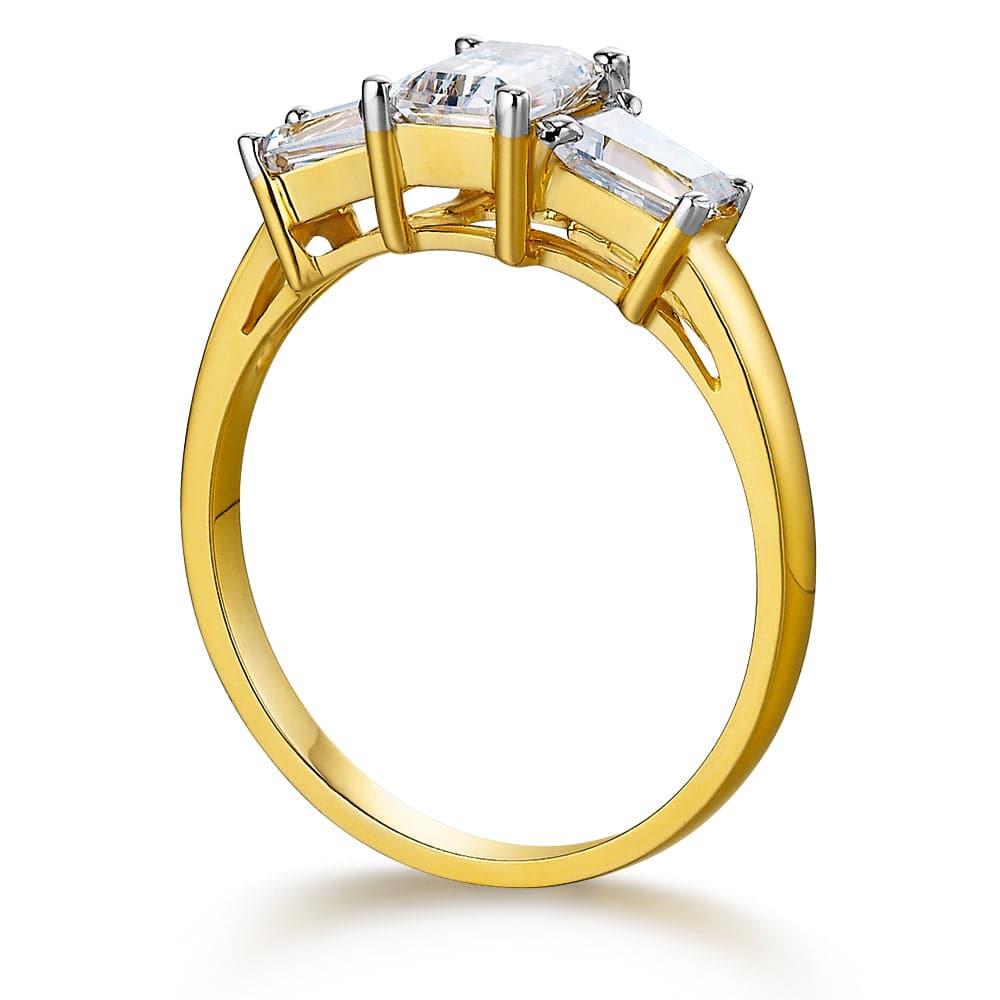 Tru-Diamonds™ Emerald Cut Synthetic Lab Grown Diamond Trilogy Ring