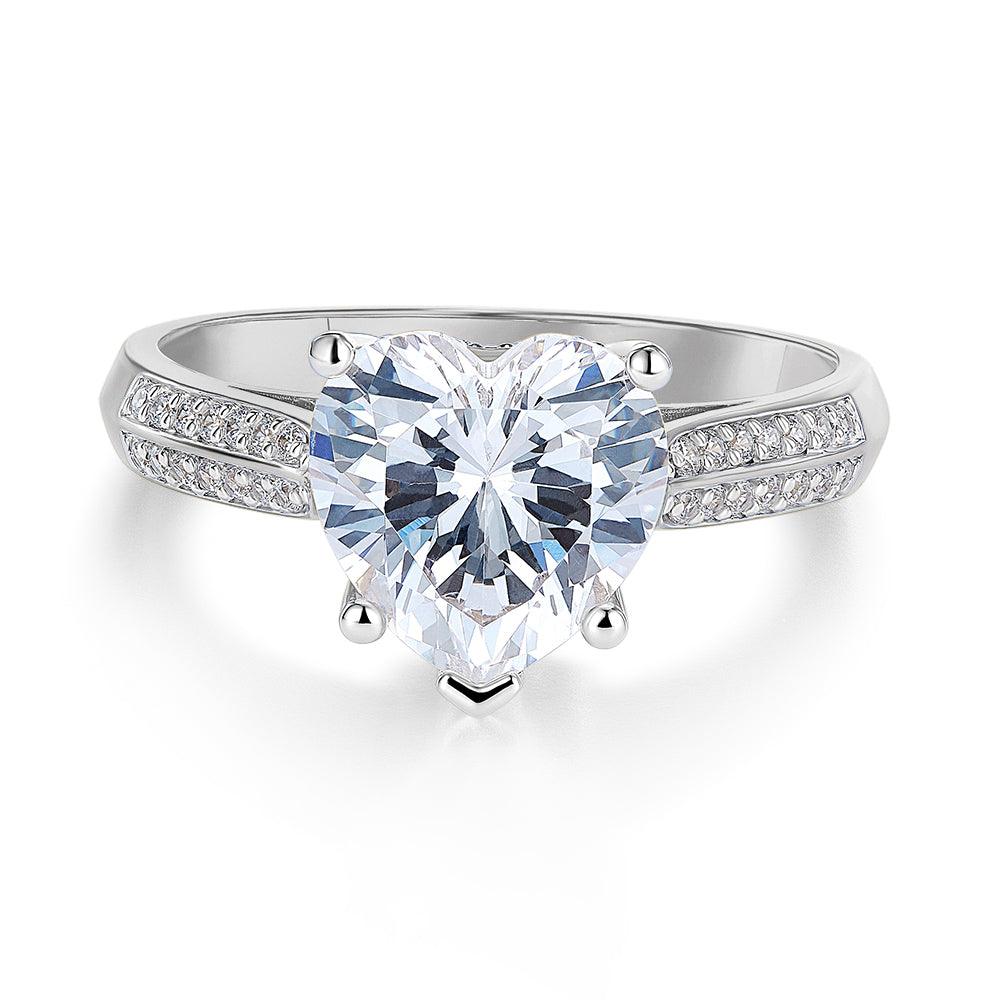 The dazzling Grand Accolade Heart Ring is a romantic twist on a timeless design. Featuring 3.75 ct. t.w. of flawless, ice white Tru-Diamonds™, its heart-shaped centre gem captures the light, and hearts, wherever you go. Ideal for celebrations of love or simply showing off your signature style.