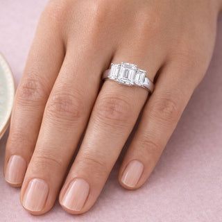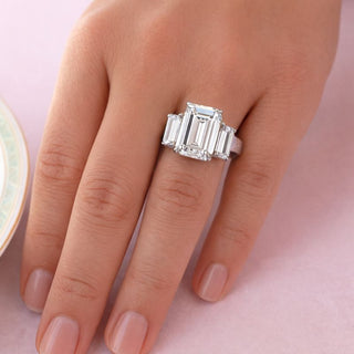 7.35 Carat Impressive Emerald Cut Trilogy Ring