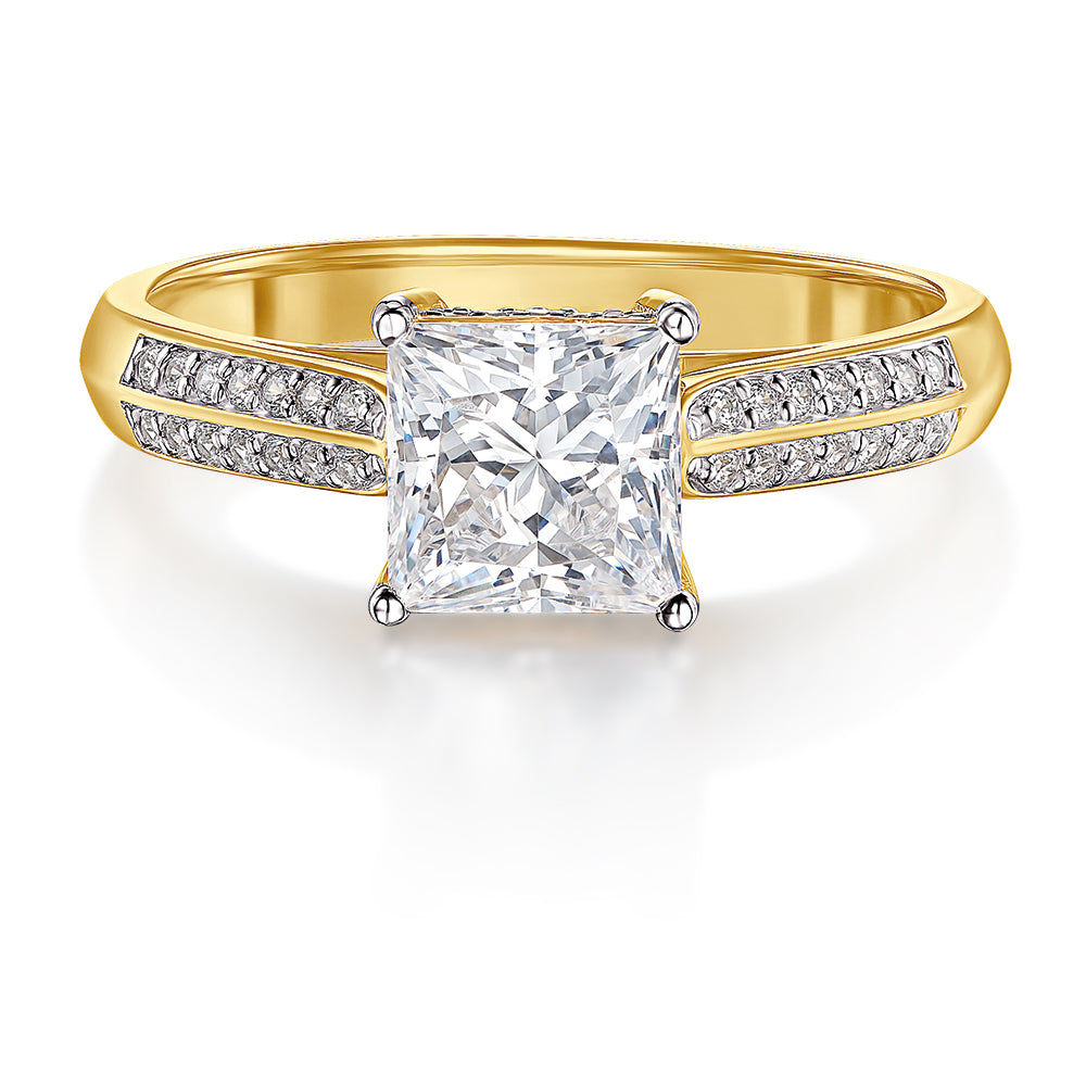 Add a regal touch to your jewellery collection with the Grand Accolade Princess Ring. Featuring a stunning 2 ct. ice white Tru-Diamond in a bold princess cut, this sleek and stylish ring is made to stand out. Ideal for those who favour confident elegance in their everyday wear.