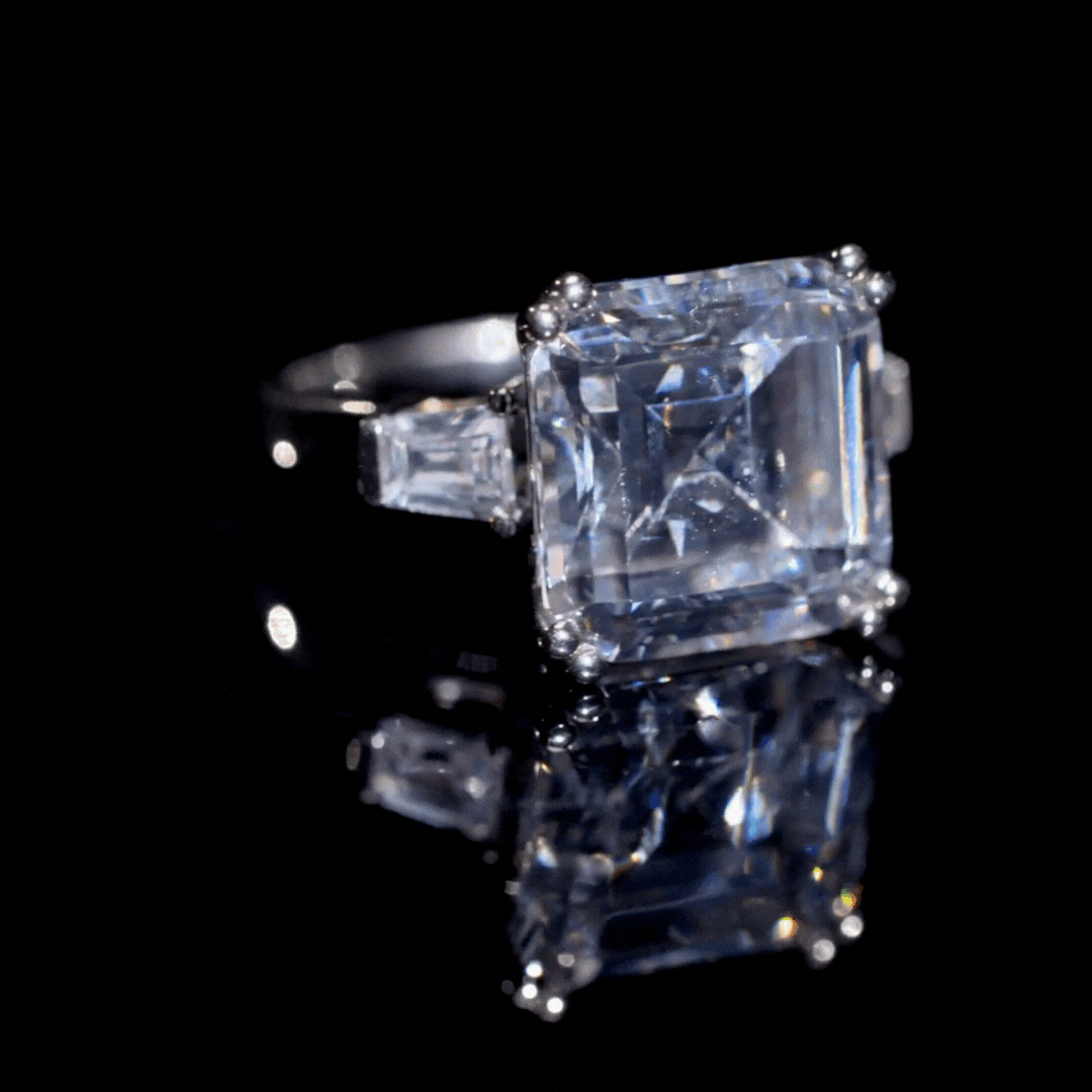 Tru-Diamonds™ Asscher and Tapered Baguette Cut Synthetic Lab Grown Diamond Ring