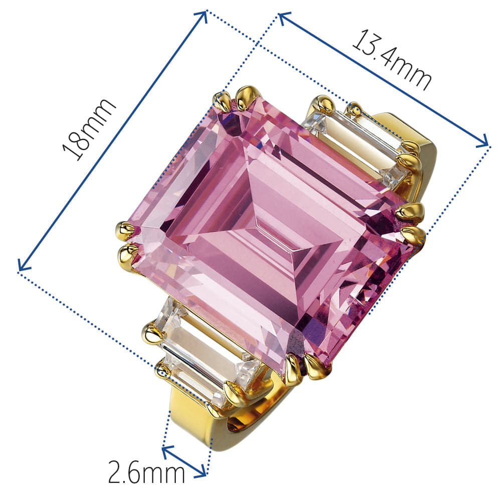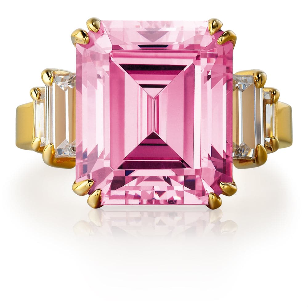 Tru-Diamonds™ Emerald and Baguette Cut Pink Synthetic Lab Grown Diamond Ring