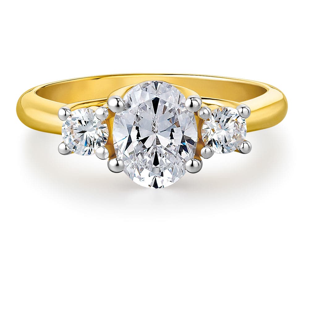 Tru-Diamonds™ Oval Cut Synthetic Lab Grown Diamond Trilogy Engagement Ring